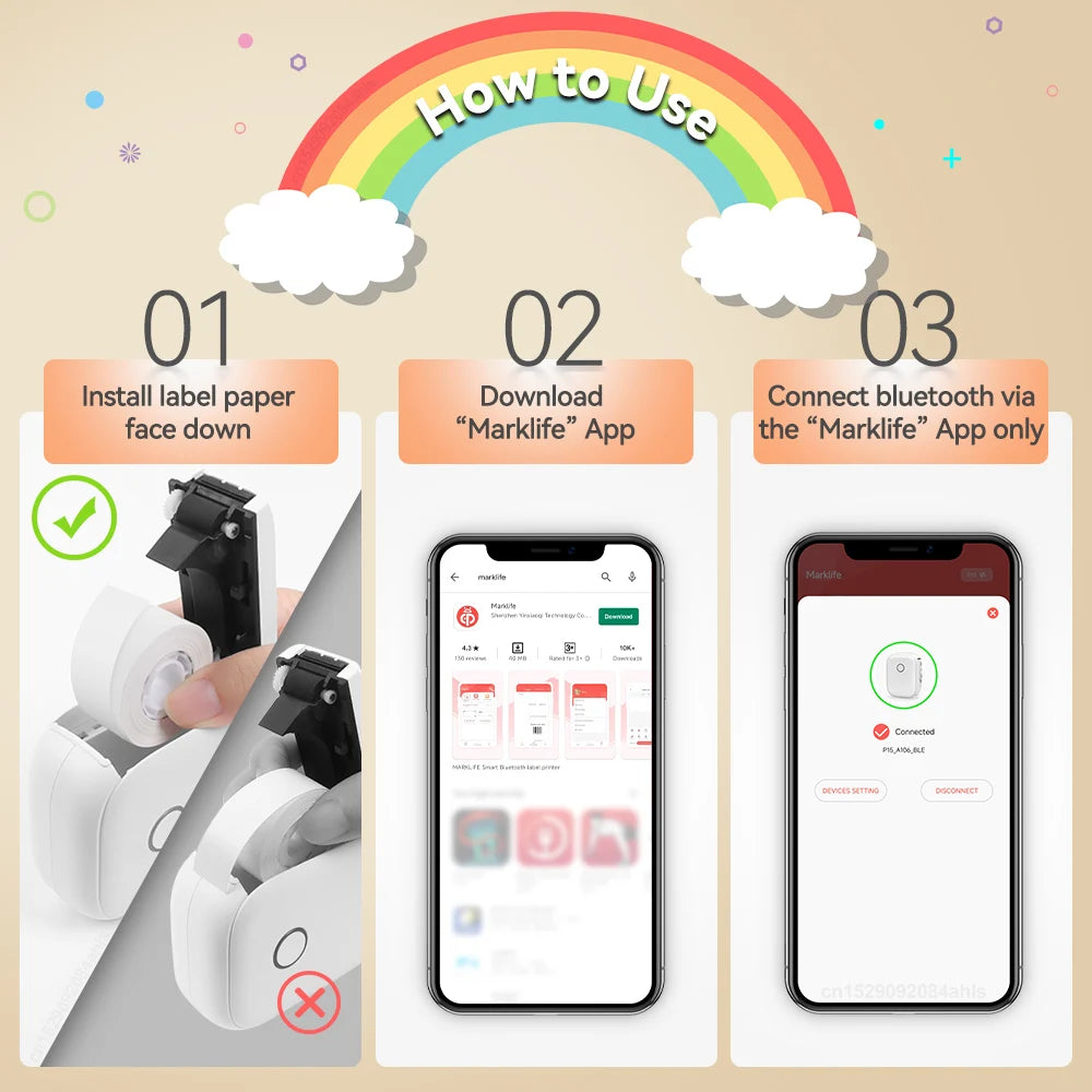 Portable Mini Printer Marklife P12 Thermal Printer Adhesive Sticker Labeling Machine P12 Label Maker or 1PK Continues Label Tape